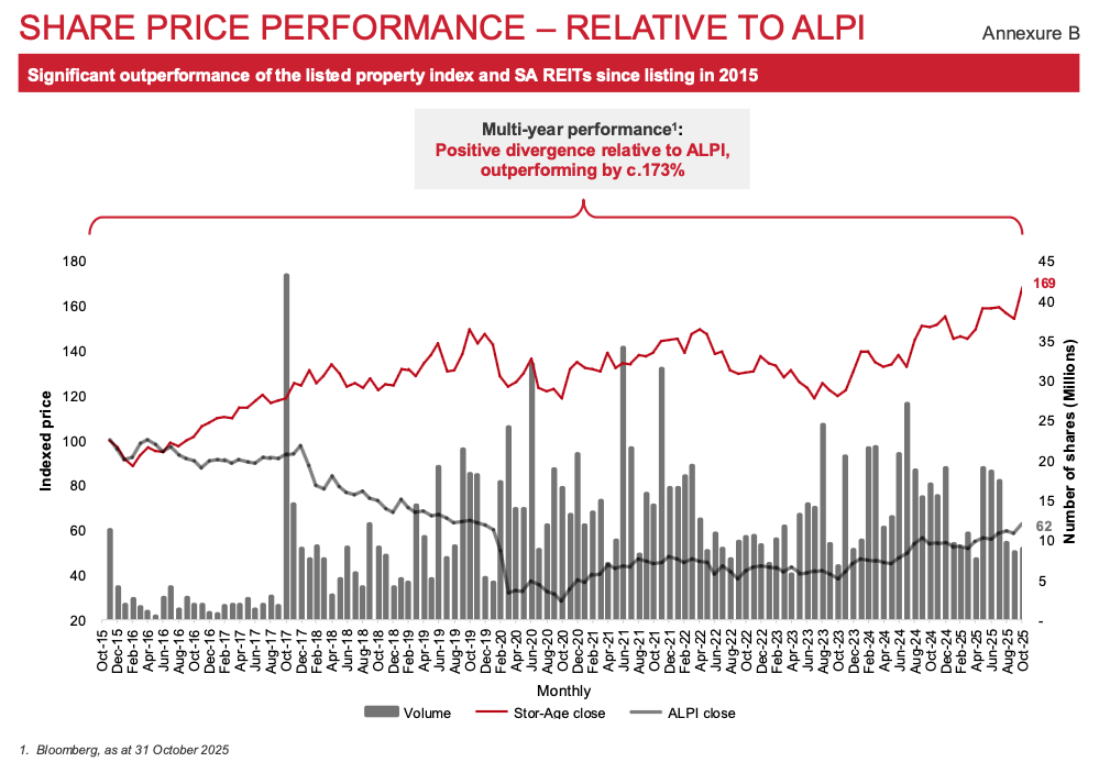 Share Price Performance relative to the ALPI as at 31 October 2025.